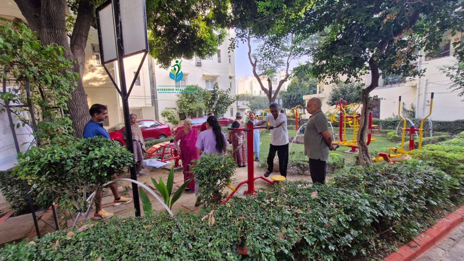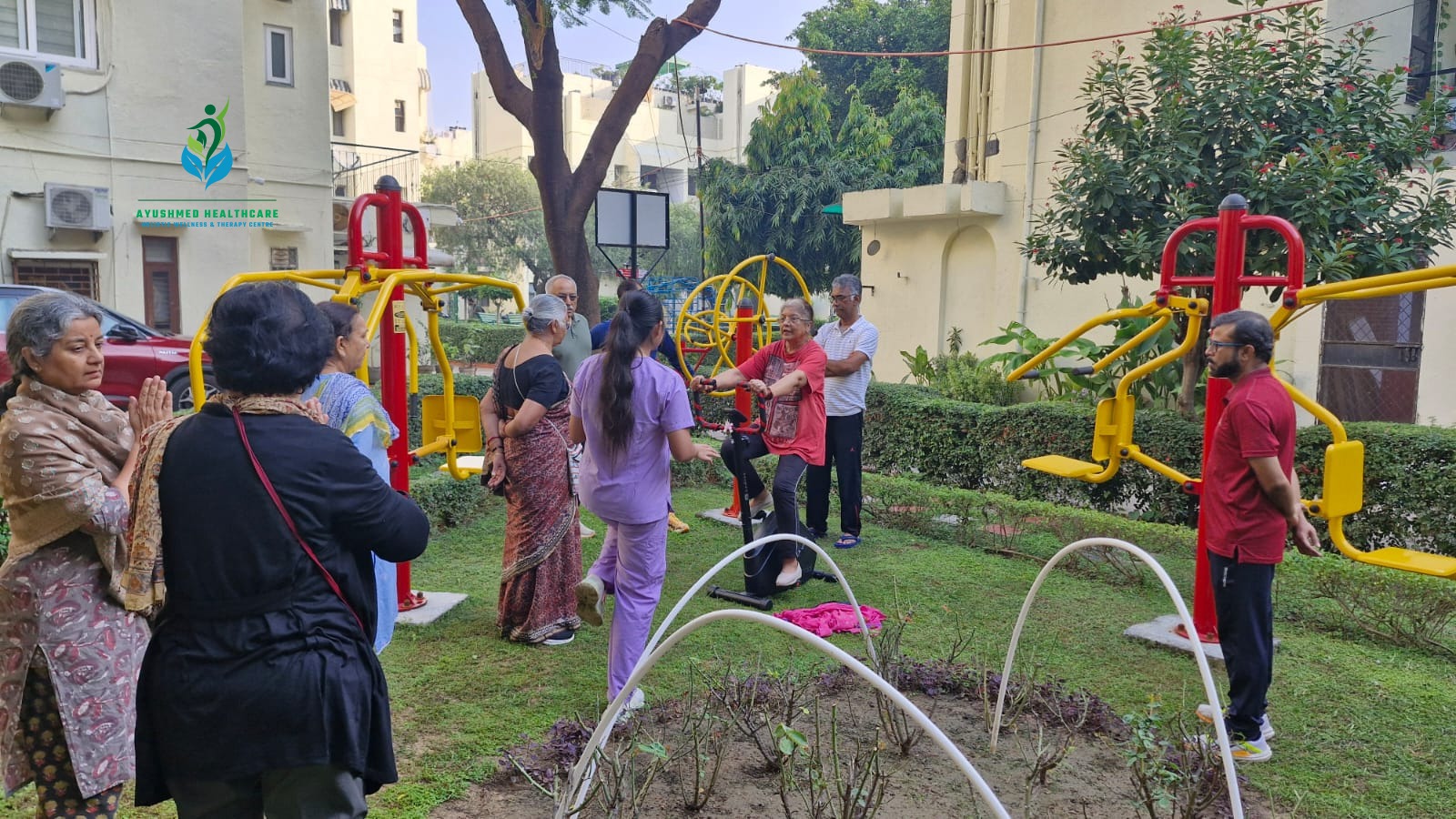 After the overwhelming success of the first Wellness Health Camp for the residents of RWA Press Enclave, Saket, AyushMed Healthcare took its wellness initiative a step further by organizing a second community session — a Training Session on Open Gym Equipment and Physiotherapy Consultation.