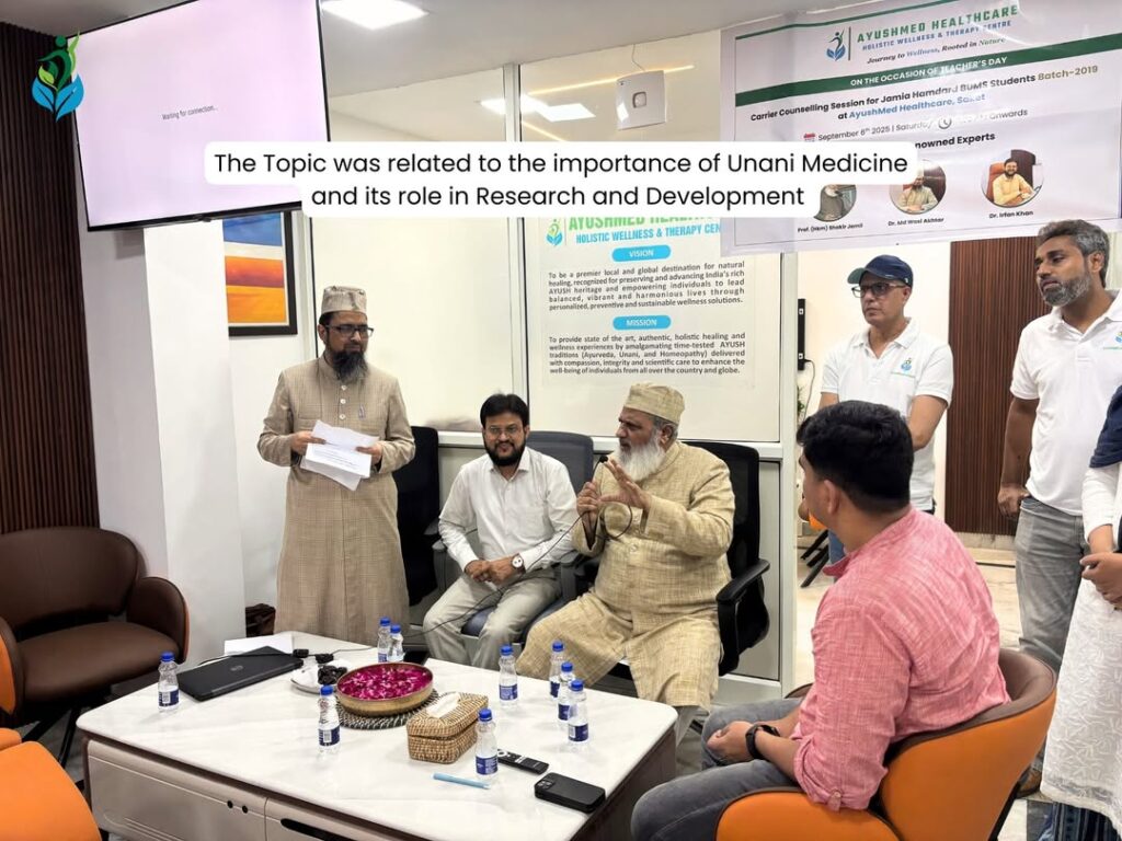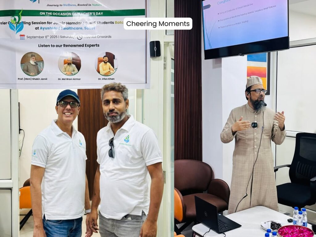 AyushMed Healthcare successfully concluded its second major community event — a Career Counselling Session for BUMS students from Jamia Hamdard (Batch 2019) — held on September 6th, 2025, to mark the occasion of Teacher’s Day.